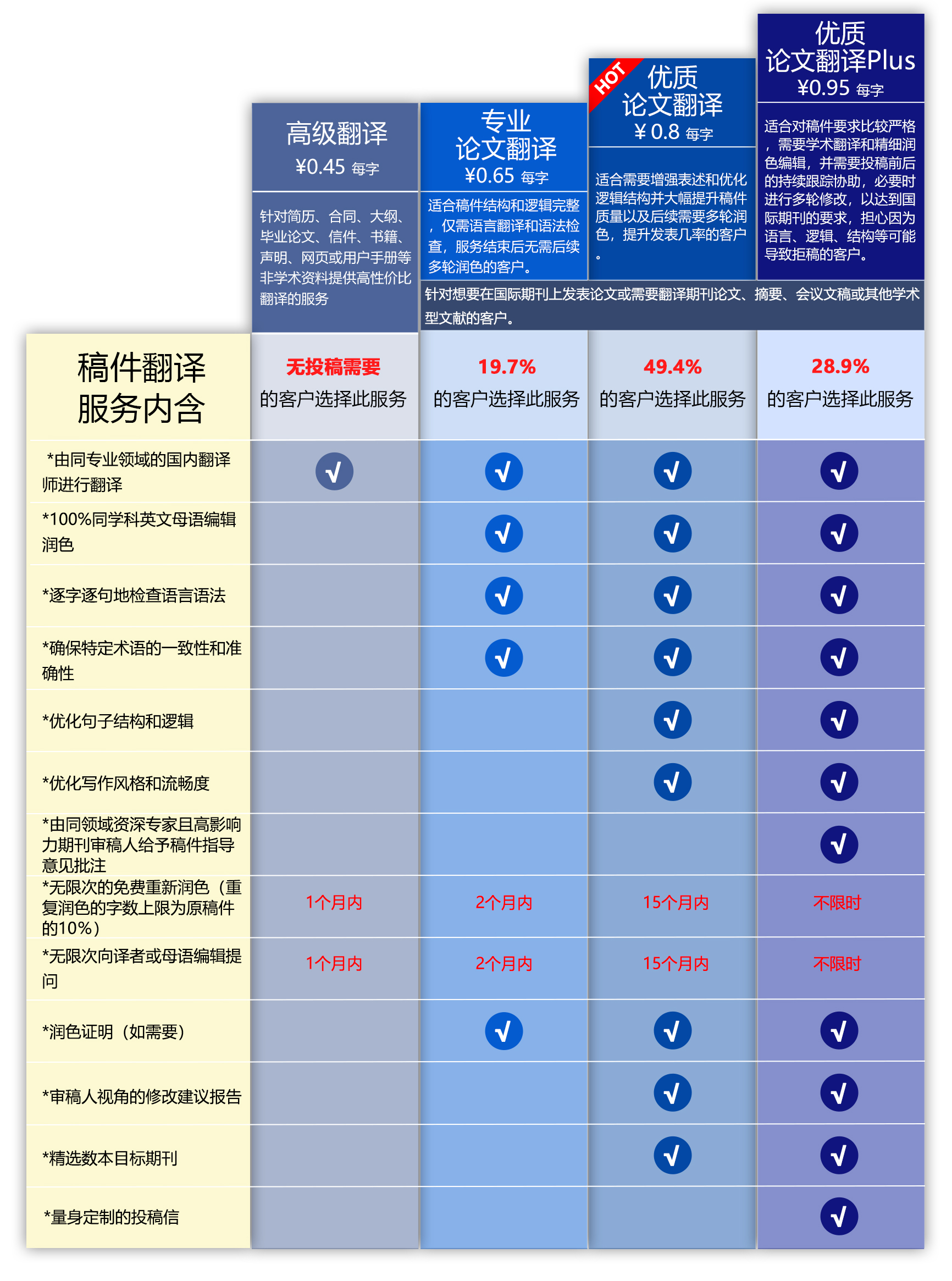 学术论文翻译服务都包含英语润色编辑服务,确保稿件翻译准确,并且行文流畅。