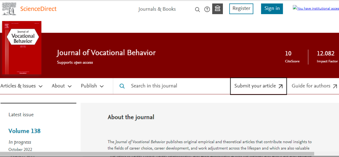 JOURNAL OF VOCATIONAL BEHAVIOR 的收稿范围,期刊是如此介绍的(截取部分内容),详情请阅读: