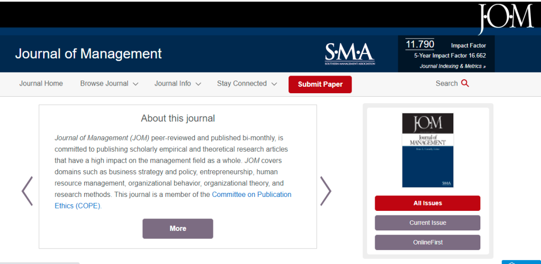 JOURNAL OF MANAGEMENT 的收稿范围,期刊是如此介绍的(截取部分内容),详情请阅读:
