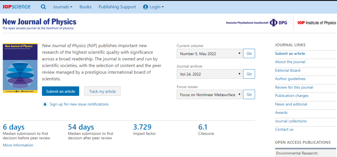 今天,我们来看看这本SCI期刊:NEW JOURNAL OF PHYSICS。从现有的记录来看,NEW JOURNAL OF PHYSICS 的2021年影响因子(JCR2020)是3.729,自引率6.41%。