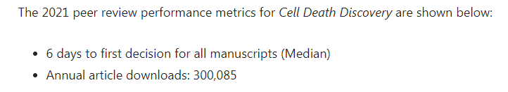 Cell Death Discovery跟Cell Death & Differentiation和Cell Death & Disease是姊妹期刊