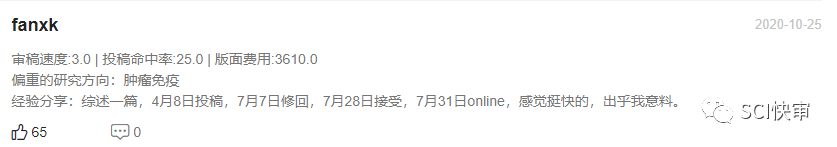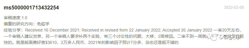 Clinical Immunology每年出版12期;官网表明2021年从提交稿件到第一次决定平均为3.5周,从提交到最后编辑决定平均为5.2周;通过对近期已发表文章审稿速度的抽样统计,大部分文章的审稿周期都是在2个月左右便可接受,最快的1个多月就可以接受!慢的也有需要4-5个月,审稿周期整体偏快,不过不太稳定,快的非常快,慢的也比较慢,当然也有可能是返修等问题影响了进度。官网未出的接受率为19%,相对较低。