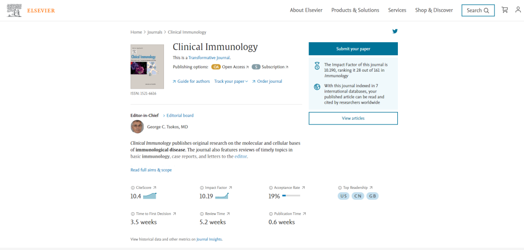 期刊官网:https://www.journals.elsevier.com/clinical-immunology