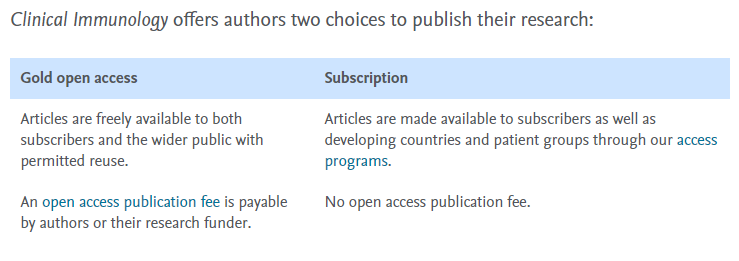 根据官网消息,在Clinical Immunology是一本可以选择黄金开放获取的期刊,选择OA的话每篇文章收取3720 美元的文章处理费,折合人民币约为20719元。选择传统订阅模式则无需版面费。