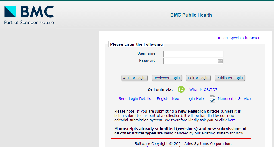 BMC Public Health is an open access, peer-reviewed journal that considers articles on the epidemiology of disease and the understanding of all aspects of public health. The journal has a special focus on the social determinants of health, the environmental, behavioral, and occupational correlates of health and disease, and the impact of health policies, practices and interventions on the community.