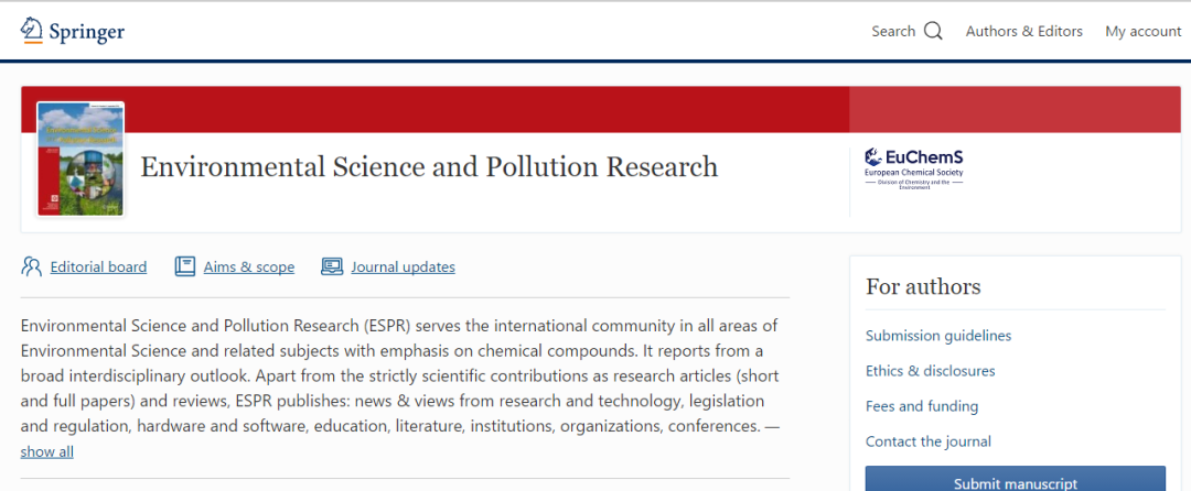 ENVIRONMENTAL SCIENCE AND POLLUTION RESEARCH 的收稿范围,期刊是如此介绍的(截取部分内容),详情请阅读: