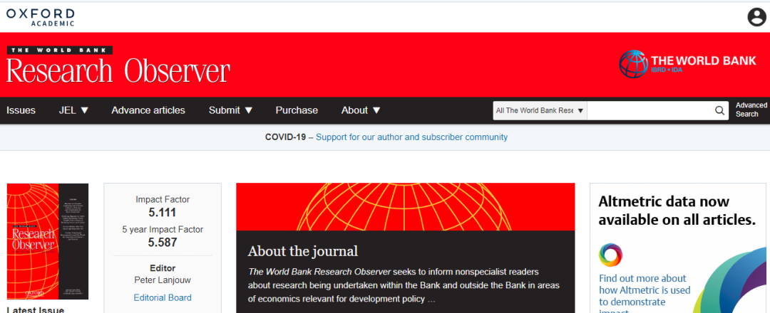 WORLD BANK RESEARCH OBSERVER 的收稿范围,期刊是如此介绍的(截取部分内容),详情请阅读: