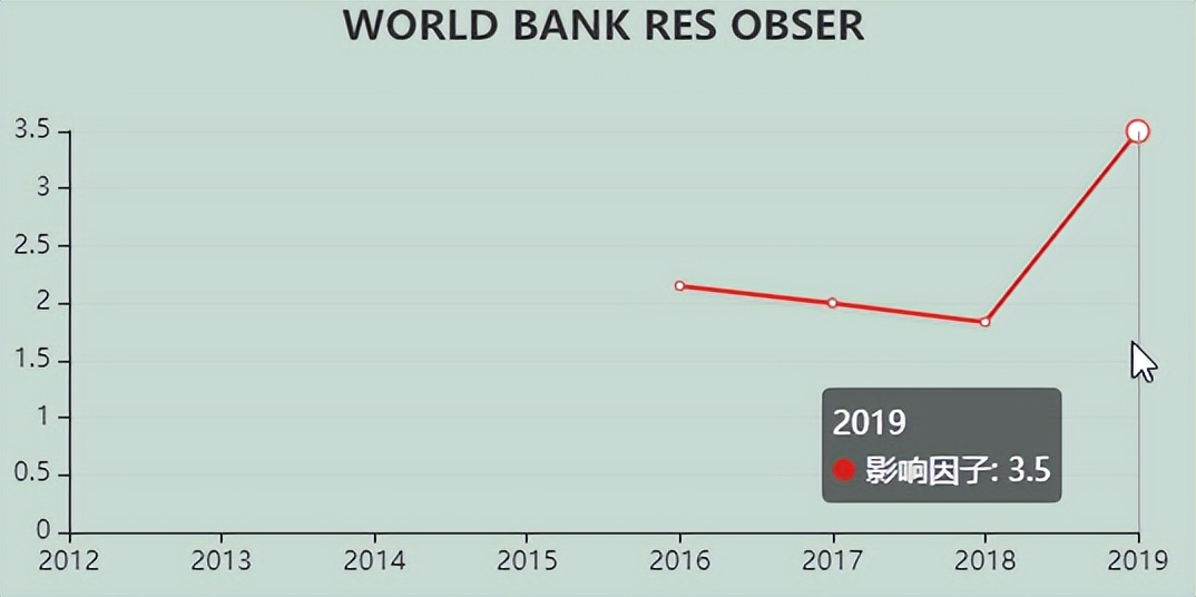 今天,我们来看看这本SCI期刊:WORLD BANK RESEARCH OBSERVER。从现有的记录来看,WORLD BANK RESEARCH OBSERVER 的2021年影响因子(JCR2020)是5.111,2020年是3.500,比2020年增长1.611,增长比例46.03%。