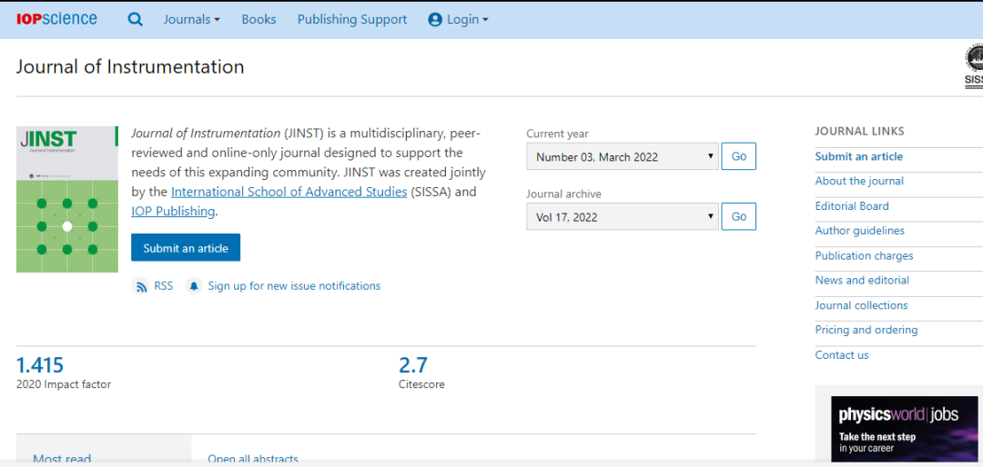 Journal of Instrumentation 的收稿范围,详情请阅读: