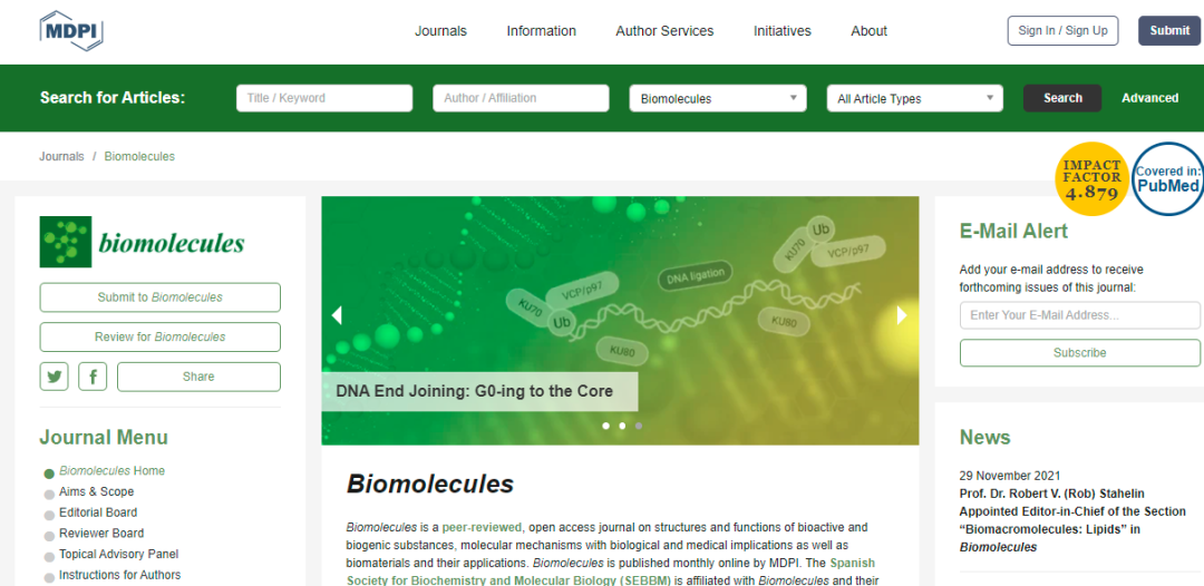 今天,我们来看看这本SCI期刊:Biomolecules。从现有的记录来看,Biomolecules 的2021年影响因子(JCR2020)是4.879,自引率5.04%。