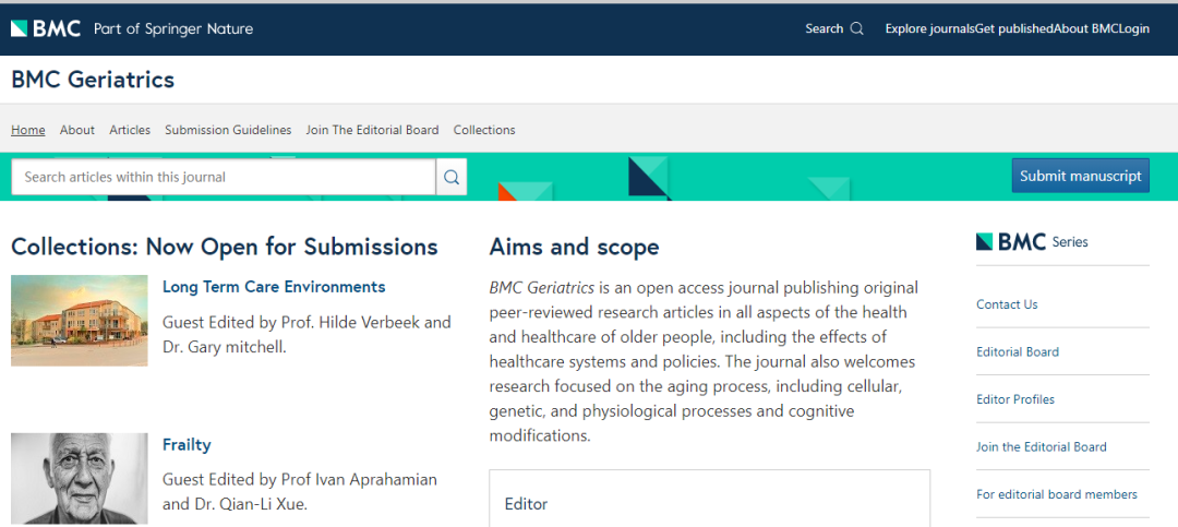 BMC Geriatrics 的收稿范围,期刊是如此介绍的(截取部分内容),详情请阅读: