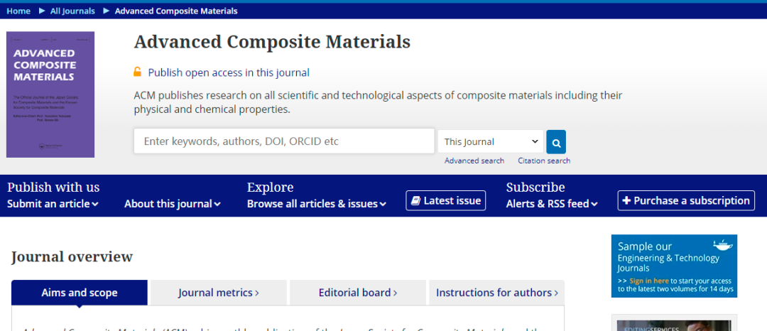 ADVANCED COMPOSITE MATERIALS 的收稿范围,期刊是如此介绍的(截取部分内容),详情请阅读: