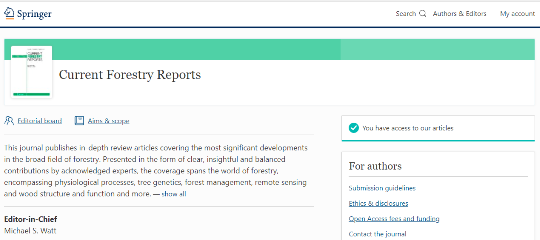 Current Forestry Reports 的收稿范围,详情请阅读: