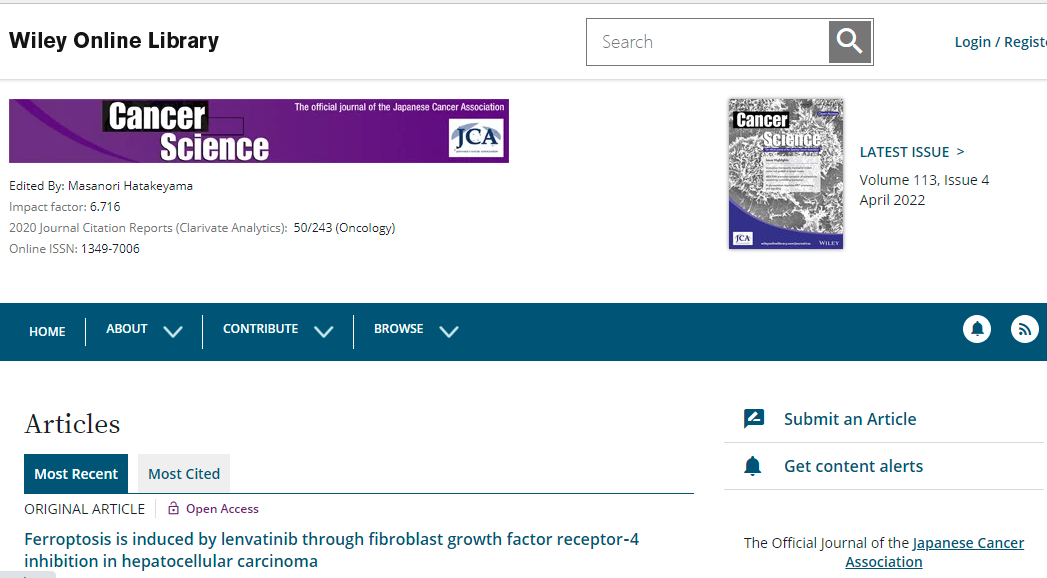 今天,我们来看看这本SCI期刊:CANCER SCIENCE。从现有的记录来看,CANCER SCIENCE 的2021年影响因子(JCR2020)是6.716,2020年是4.966,比2020年增长1.750,增长比例35.24%。