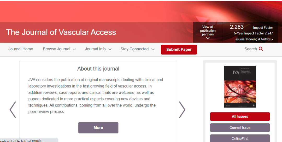 今天,我们来看看这本SCI期刊:Journal of Vascular Access。从现有的记录来看,Journal of Vascular Access 的2021年影响因子(JCR2020)是2.283,自引率35%。