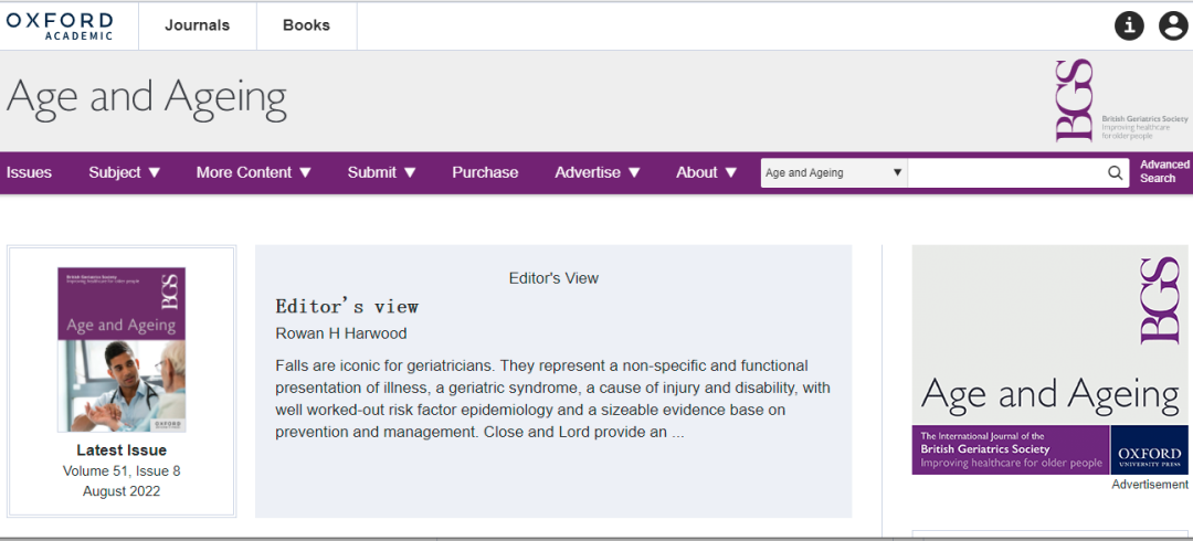 Age and Ageingis an international journal publishing refereed original research, review articles and editorial pieces on geriatric medicine and clinical gerontology. Its scope includes applied and clinical research on human ageing and clinical, epidemiological and psychological aspects of later life, medical education and service improvement. We place particular emphasis on material which will be of immediate interest to clinicians. We rarely publish analyses of epidemiological studies where the clinical, health policy or educational implications are not clear. We do not publish in vitro or animal studies.