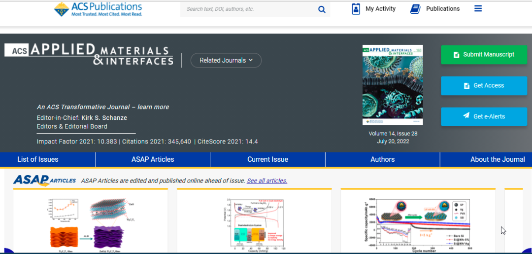 今天,我们来看看这本SCI期刊:ACS Applied Materials & Interfaces。从现有的记录来看,ACS Applied Materials & Interfaces 的2022年影响因子(JCR2021)是10.383,2021年影响因子9.229,2020年影响因子8.758。