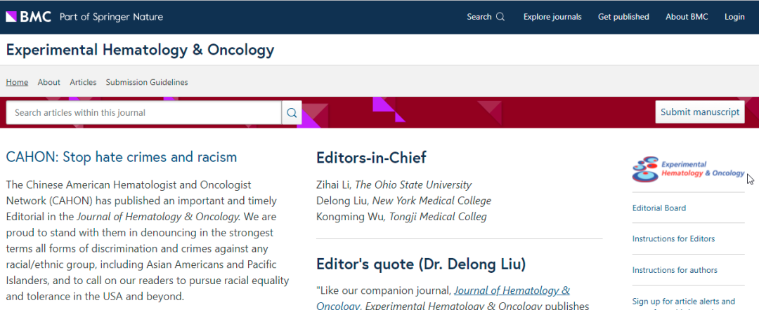 Experimental Hematology & Oncology 的收稿范围,期刊是如此介绍的(截取部分内容),详情请阅读: