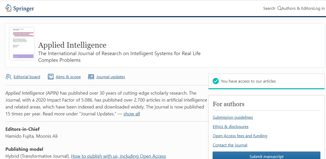 APPLIED INTELLIGENCE 的收稿范围,期刊是如此介绍的(截取部分内容),详情请阅读: