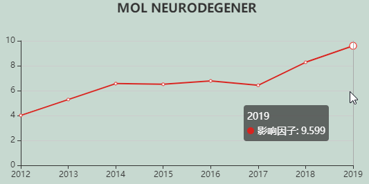 今天,我们来看看这本SCI期刊:Molecular Neurodegeneration。从现有的记录来看,Molecular Neurodegeneration 的2021年影响因子(JCR2020)是14.195,2020年是9.599,比2020年增长4.596,增长比例47.88%。