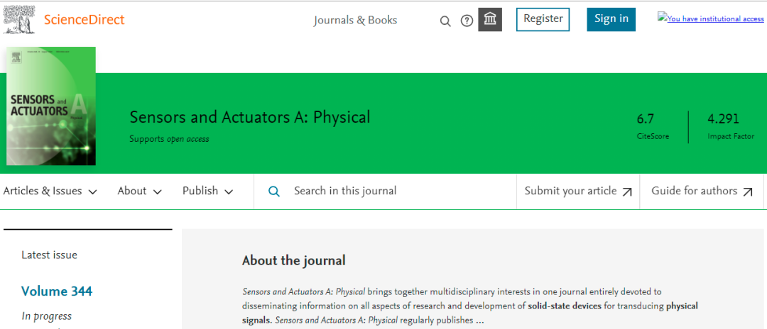 今天,我们来看看这本SCI期刊:SENSORS AND ACTUATORS A-PHYSICAL。从现有的记录来看,SENSORS AND ACTUATORS A-PHYSICAL 的2022年影响因子(JCR2021)是4.291,2021年影响因子3.407,2020年影响因子2.904。