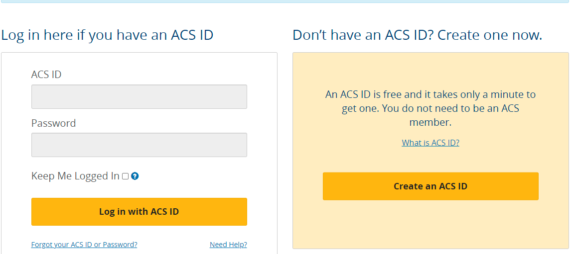 如果还没有注册过账户,只需点击“Create an ACS ID”注册账户即可!