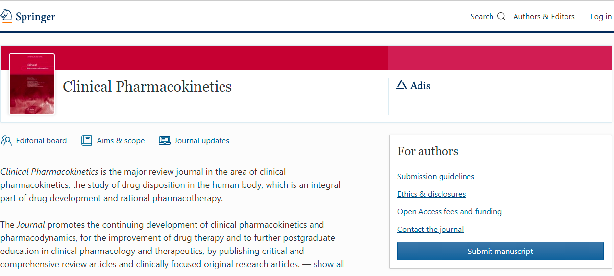 CLINICAL PHARMACOKINETICS 的收稿范围,期刊是如此介绍的(截取部分内容),详情请阅读: