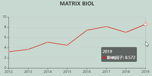 今天,我们来看看这本SCI期刊:MATRIX BIOLOGY。从现有的记录来看,MATRIX BIOLOGY 的2021年影响因子(JCR2020)是11.583,2020年是8.572,比2020年增长3.011,增长比例35.13%。