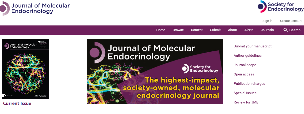 Journal of Molecular Endocrinology is a leading global journal that publishes original research articles and reviews. The journal focuses on molecular and cellular mechanisms in endocrinology, including: gene regulation, cell biology, signalling, mutations, transgenics, hormone-dependant cancers, nuclear receptors. Basic and pathophysiological studies at the molecule and cell level are considered, as well as human sample studies where this is the experimental model of choice. Technique studies including Omics, CRISPR or gene editing are also encouraged, provided they are set within a larger endocrinology context.