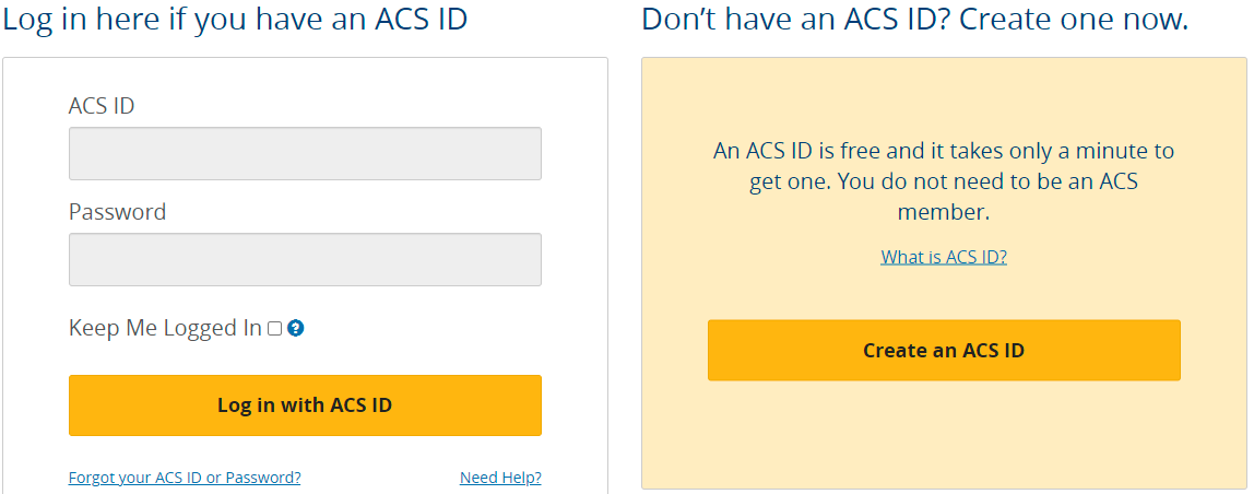 如果还没有注册过账户,只需点击“Create an ACS ID”注册账户即可!
