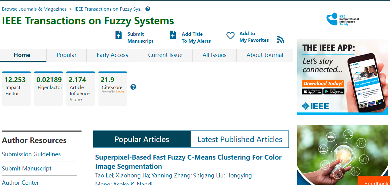 今天,我们来看看这本SCI期刊:IEEE TRANSACTIONS ON FUZZY SYSTEMS。从现有的记录来看,IEEE TRANSACTIONS ON FUZZY SYSTEMSs 的2022年影响因子(JCR2021)是12.253,2021年影响因子12.029,2020年影响因子9.518。