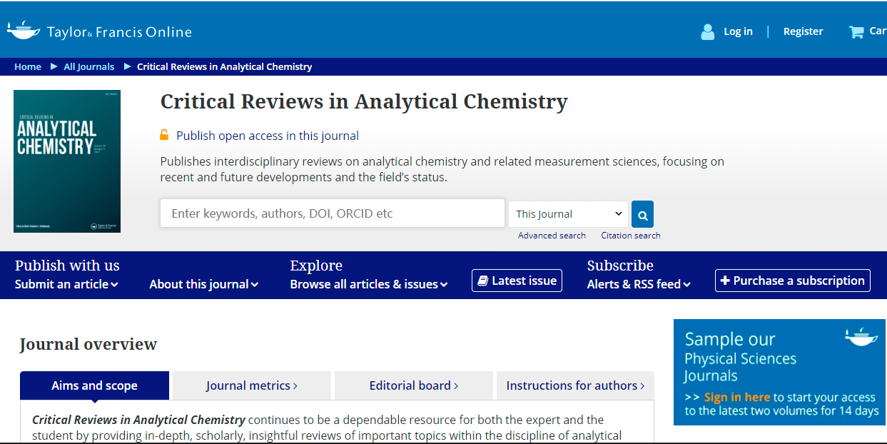 CRITICAL REVIEWS IN ANALYTICAL CHEMISTRY 的收稿范围,期刊是如此介绍的(截取部分内容),详情请阅读: