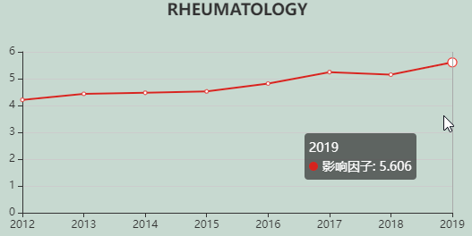 今天,我们来看看这本SCI期刊:RHEUMATOLOGY。从现有的记录来看,RHEUMATOLOGY 的2022年影响因子(JCR2021)是7.046,2021年影响因子7.580,2020年影响因子5.606。