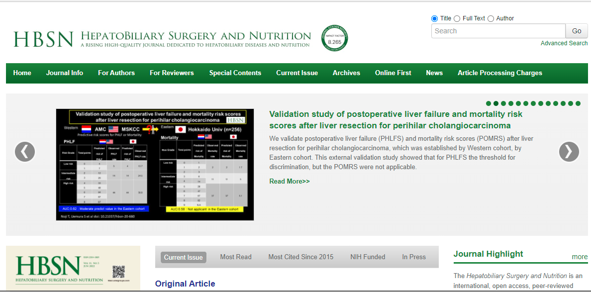 The main focus of the journal is to describe new findings in hepatopancreatobiliary disease and nutrition, and to provide current and practical information on diagnosis, prevention and clinical investigations. Specific areas of interest include, but not limited to, surgical techniques, clinical and basic researches, transplantation and other therapies, NASH, NAFLD, targeted drug, gut microbiota, metabolism, cancer immunity, genomics, nutrition and dietetics, etc.