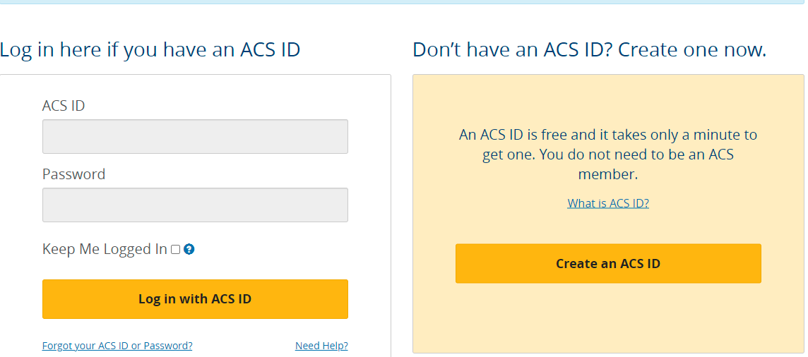 如果还没有注册过账户,只需点击“Create an ACS ID”注册账户即可!