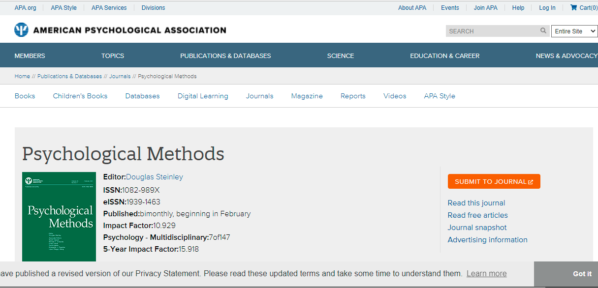 Psychological Methods®is devoted to the development and dissemination of methods for collecting, analyzing, understanding, and interpreting psychological data.