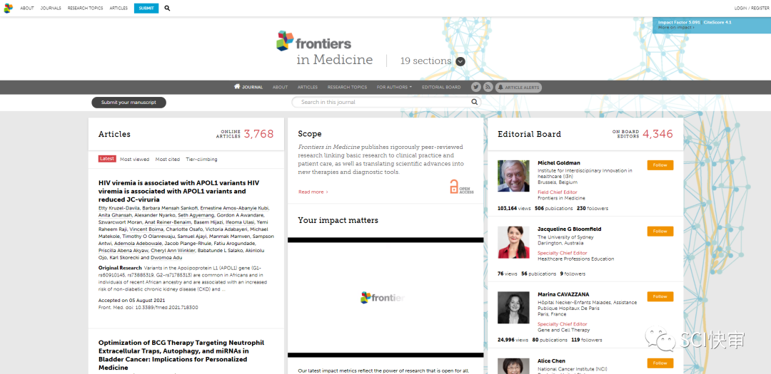 期刊官网:https://www.frontiersin.org/journals/medicine