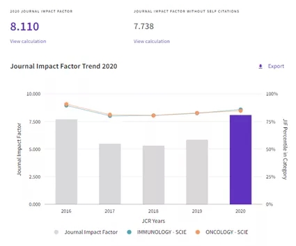 OncoImmunology 期刊影响因子呈逐年递增趋势,2020年有显著增长。