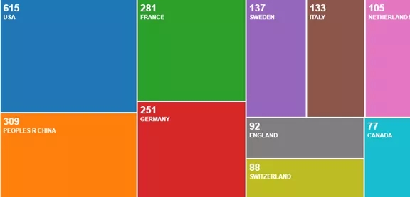 近5年,在OncoImmunology 期刊发文排名前十的国家中,来自中国学者的发文为309篇,占比18.166%,排名第二位;中国发文较多的机构有:中国医学科学院北京协和医学院(48篇),复旦大学(36篇),中山大学(30篇),中国科学院(26篇),上海交通大学(23篇)等。