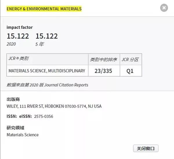 Energy & Environmental Materials (EEM) 是由郑州大学与John Wiley&Sons,Inc.合作出版的国际期刊,期刊主要面向能源捕获、转换、存储和传输材料以及洁净环境材料。。2017年,拟创办的EEM入选中国科技期刊国际影响力提升计划D类项目支持,2018年,EEM正式创刊(季刊),并在2020年7月被Science Citation Index Expanded (SCIE)收录。今年,EEM获得了首个影响因子,达15.122,2020年总被引频次为729次。