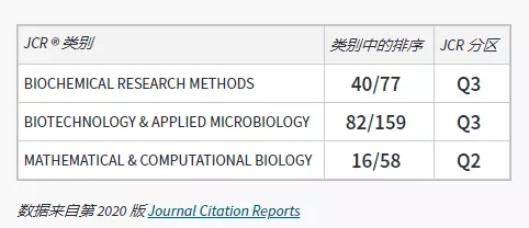 BMC Bioinformatics在159本生物工程与应用微生物期刊中排名82位,位于Q3区;在77本生化研究方法期刊中排名40位,位于Q3区;在58本数学与计算生物学期刊中排名16位,位于Q2区。