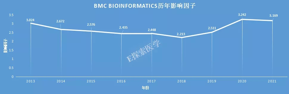 BMC Bioinformatics近年来影响因子一直稳居在 2 分以上,这两年影响因子保持在3分+,去年影响因子3.242分,今年最新影响因子3.169分!