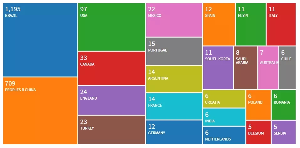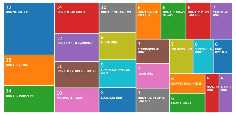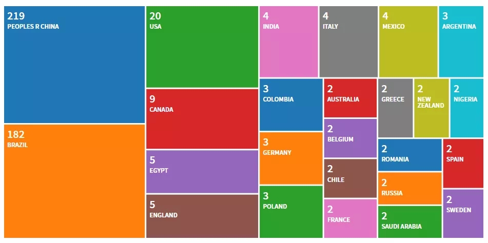根据Web of Science收录的论文来看,从2009年至今,发文量最多的是巴西学者1195篇,占比约58%,其次是中国学者709篇,占比约34%。分析了从2019年至今(2021年8月23日)巴西学者的发文量则以182篇,位居第二位,占比下降至43%左右;而中国学者,共219篇,位居第一位,占比近52%左右。国人学者发文比例上升,这可能也是该期刊近年来被国内多个机构列为预警期刊的原因之一。2021年的发文量,巴西学者70篇,占比约50%,位居第一;中国学者62篇,位居第二位,占比约44%!