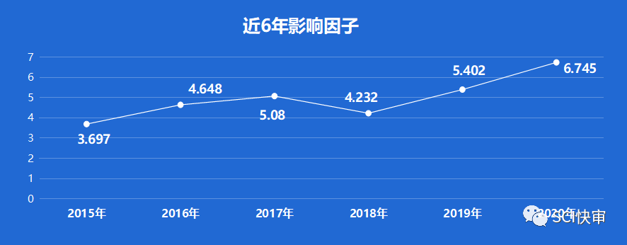 2016年至2019年影响因子在4分与5分间徘徊,2020年突破6分,2020年影响因子为6.745。