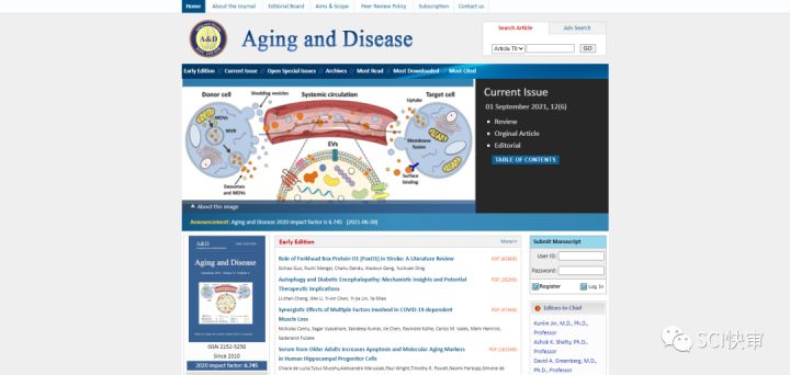 Aging and Disease发表关于衰老生物学、年龄相关疾病的病理生理学和老年人疾病创新疗法的核心问题等新颖和高影响力的文章。