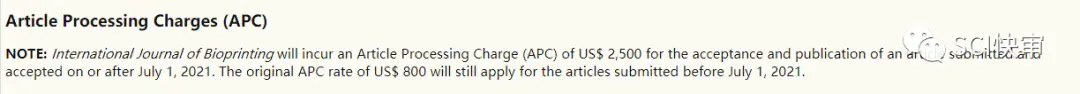 根据官网消息,International Journal of Bioprinting是一本开放获取的期刊,将收取 2,500 美元的文章处理费 (APC),折合人民币约为16146元,这个价格用于2021年7月1日后,之前是800美元。