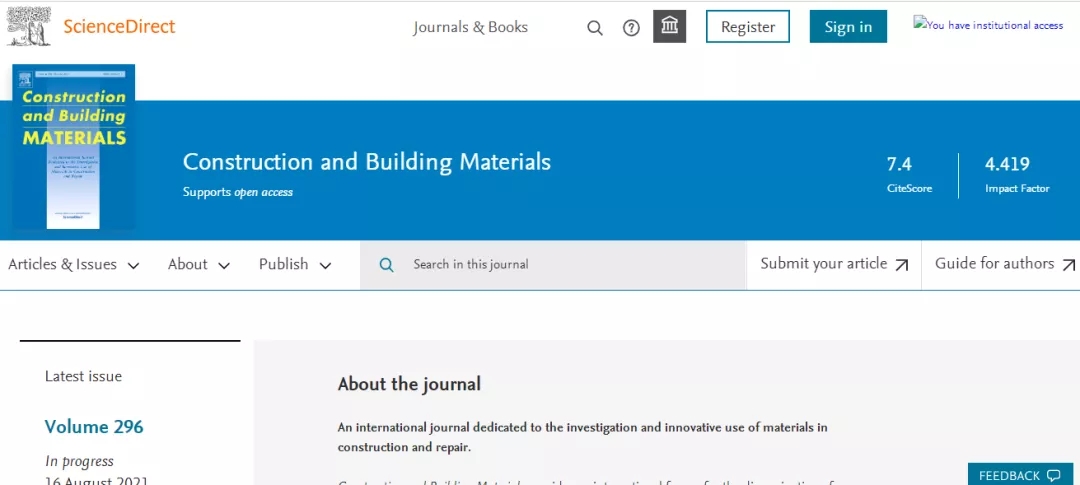 今天,我们来看看这本SCI期刊:CONSTRUCTION AND BUILDING MATERIALS。从现有的记录来看,CONSTRUCTION AND BUILDING MATERIALS 的2021年影响因子(JCR2020)是6.141。