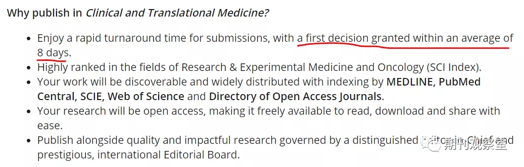 Clinical and Translational Medicine之前由Springer出版,于2020年2月21日转为Wiley开源出版,旨在促进和加速将临床前研究转化为临床应用以及基础和临床科学家之间的交流,强调新生物技术、生物材料、生物工程、疾病特异性生物标志物、细胞和分子医学、组学科学、生物信息学、应用免疫学、分子成像、药物发现和开发以及调控和健康政策的临床潜力和应用。目前,录用论文的开源费用为3000美元/篇。