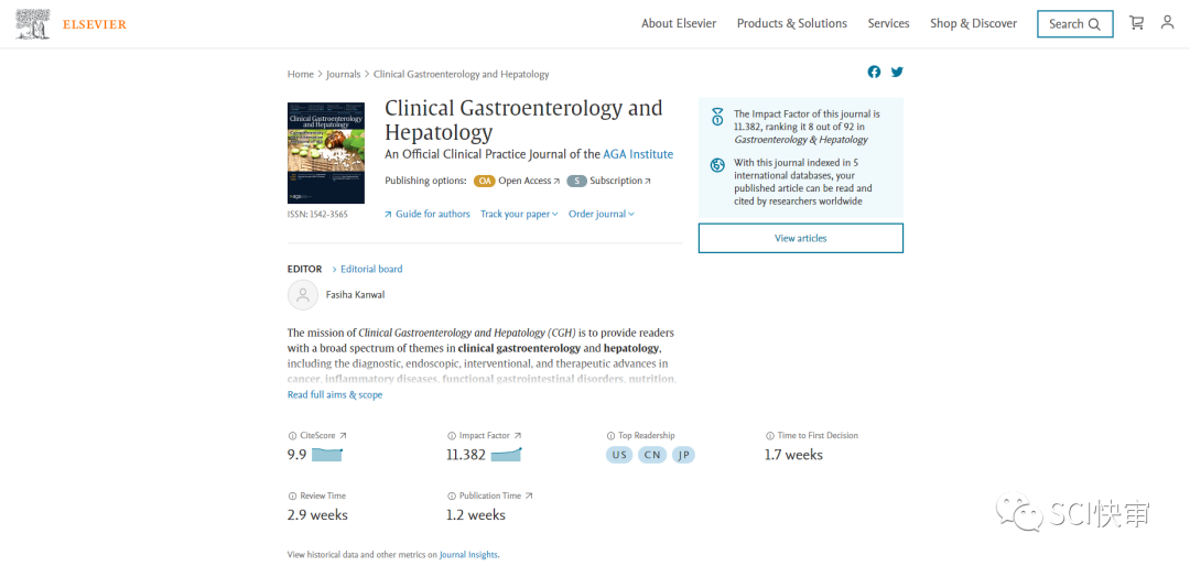 期刊官网:https://www.journals.elsevier.com/clinical-gastroenterology-and-hepatology