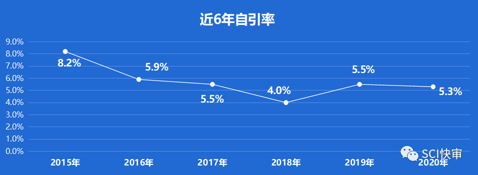 Clinical Gastroenterology and Hepatology近6年的自引率均控制在9%以下,2020年自引率为5.3%,自引率较低,暂时不需要有自引率方面的顾虑。